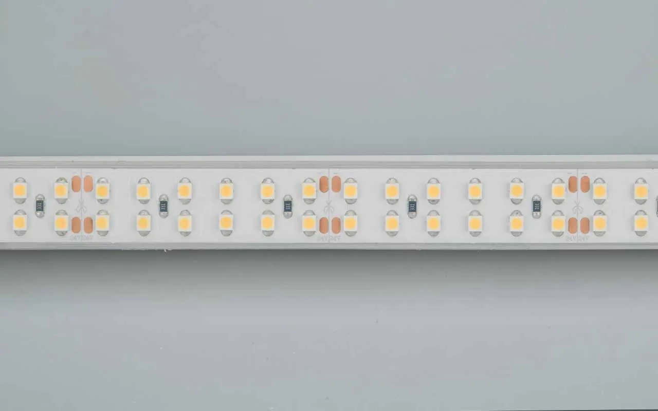 Широкая герметичная IP66 (плата в cиликон.трубке) гибкая лента LUX, светодиоды 2x2 (2 ряда) smd 3528, 240шт/м (1200шт на 5м), белая плата 15мм, скотч 3М. Цвет БЕЛЫЙ ТЕПЛЫЙ 2600-2800K.Питание 24В, мощность 19,2 Вт/м (96 Вт на 5м), угол 120°. Размеры 5000x17.5x5.5мм. Мин.отрезок 50мм (12 LED). Цена за 1м.