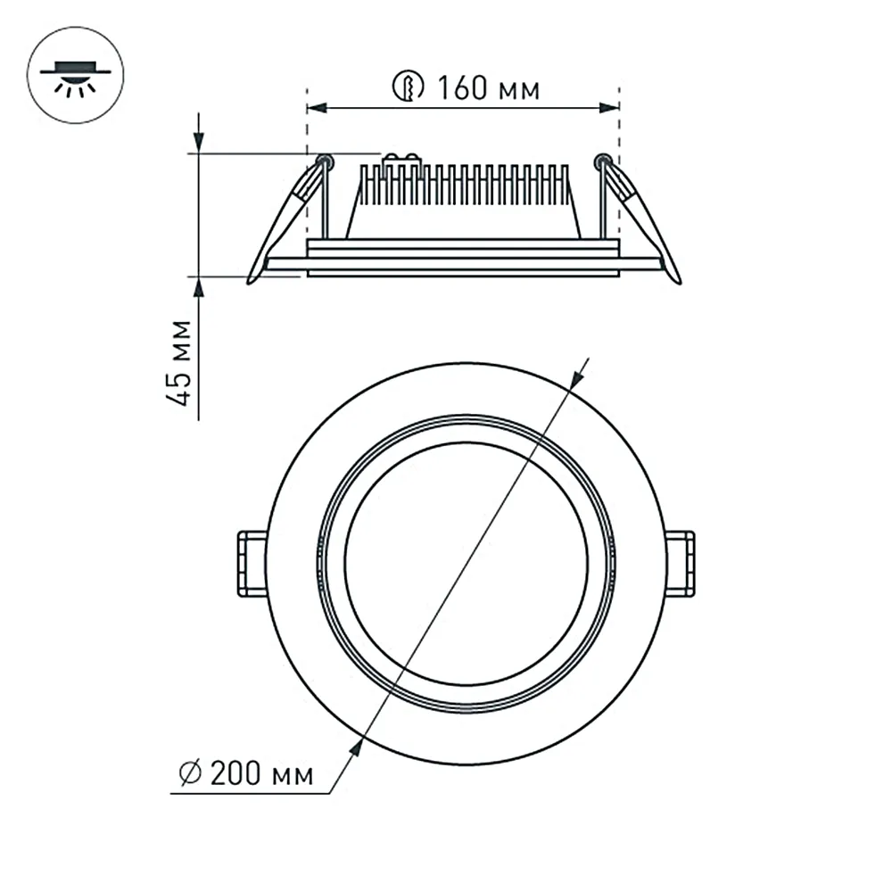 Стеклянная круглая панель 16Вт / ДНЕВНОЙ БЕЛЫЙ 4000-4500K / 1215лм / 120°. Размер 200х45мм (в отверстие 160мм). Корпус белый. Питание от сети 220VAC, драйвер в комплекте 300mA 45-65V. Диапазон рабочих температур -10°..+40°C. Для помещений.