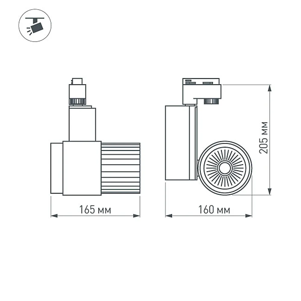 Подвесной светильник для треков/шин 2 провода. Светодиод CREE 40W, цвет ТЁПЛЫЙ 3000K, св.поток 3200-3600лм, угол 24°. Белый корпус, черная рамка и радиатор. Мощность 40Вт, питание AC180-240V. Максимальные габариты HxLxW: 205х165х160 мм