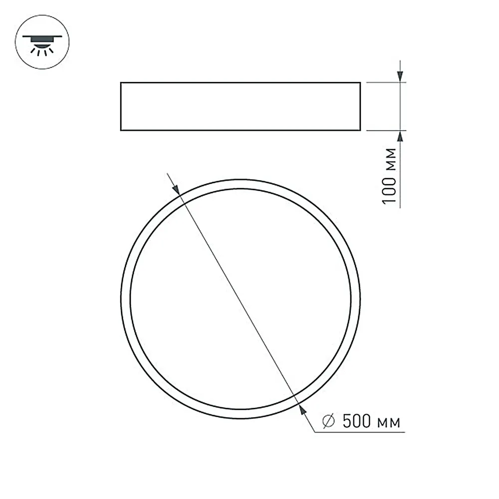 Накладной светильник 35Вт, черный круглый корпус. Цвет БЕЛЫЙ ДНЕВНОЙ 4000K, св.поток 3150лм, CRI(Ra)>80, угол 120°. Размер Ф500x100мм. Питание AC220-240V, 35Вт, драйвер встроенный (1 шт 30-42V 900mA).