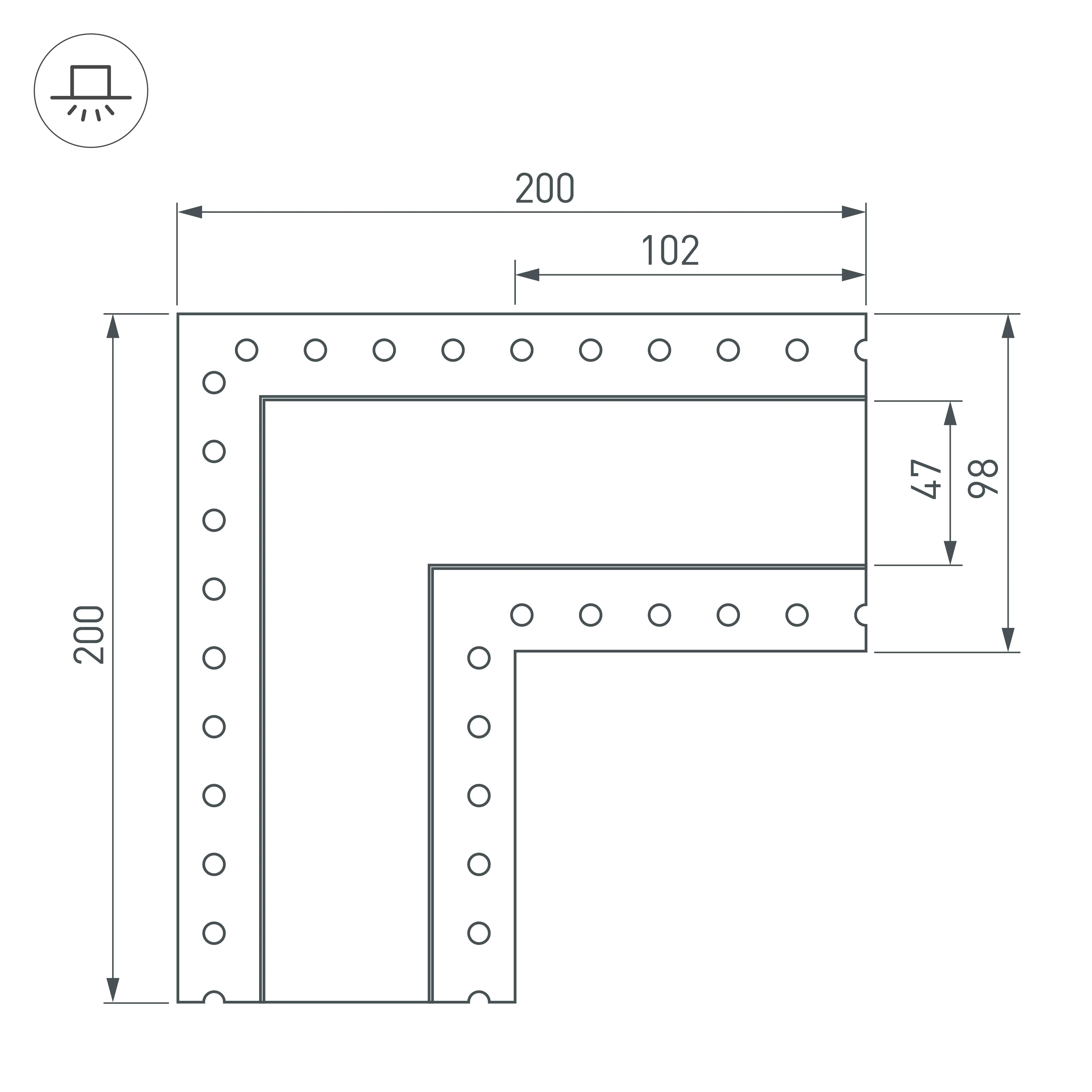 Угол в сборе, для профиля SL-LINIA45-FANTOM. В комплекте угол с экраном, соединители, винты, шестигранный ключ.