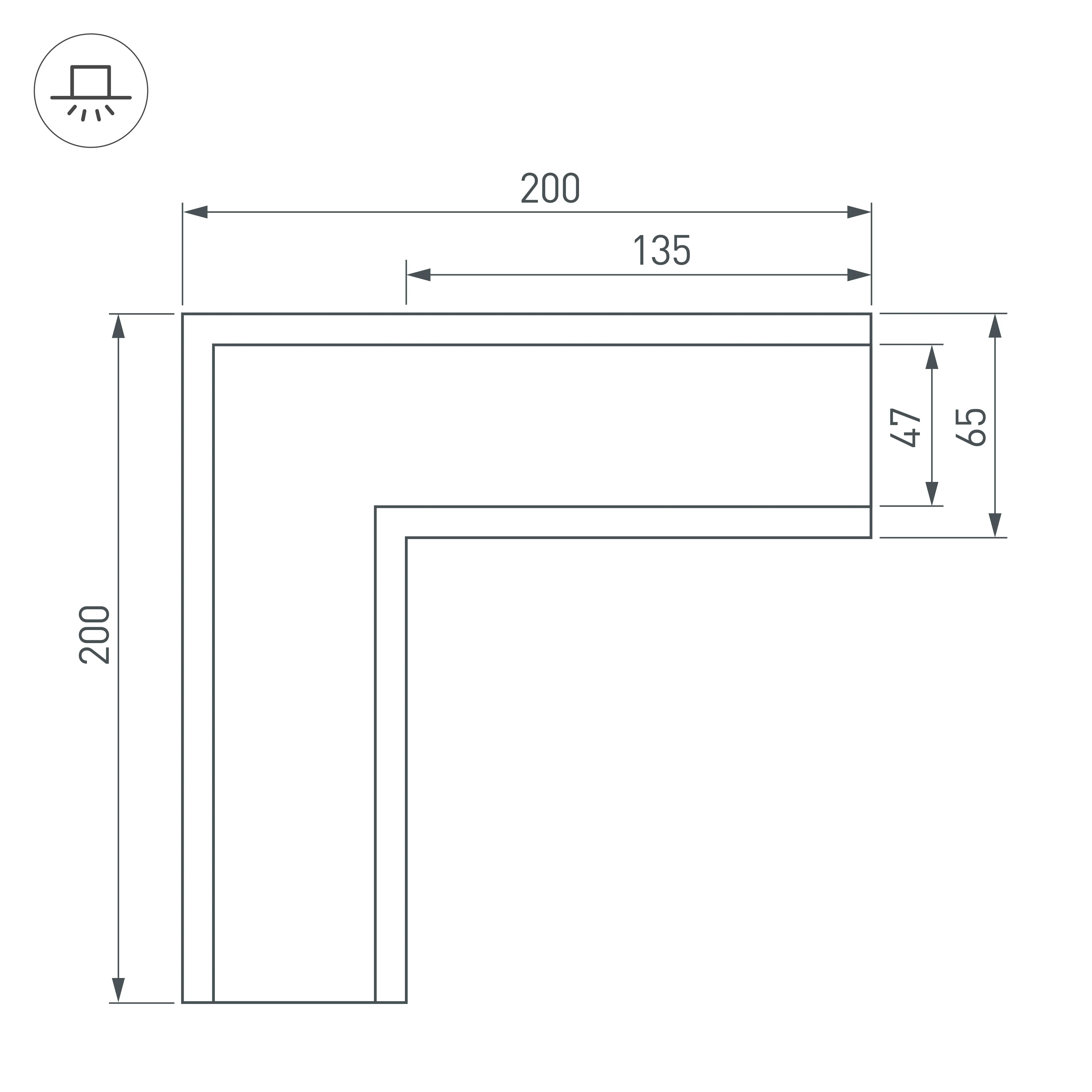 Угол в сборе, для профиля SL-LINIA65-F. В комплекте угол с экраном, соединители, винты, шестигранный ключ.