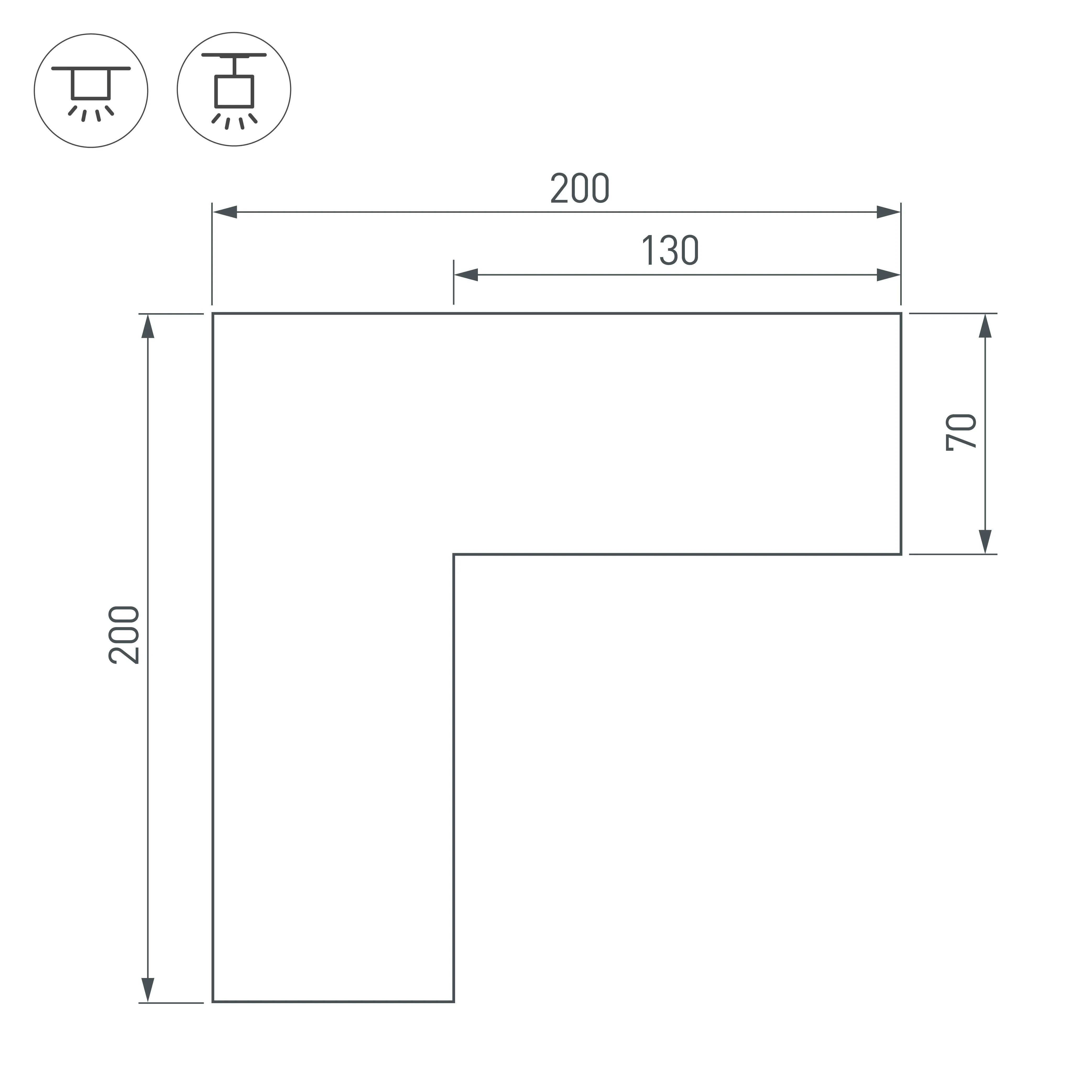 Угол в сборе, для профиля SL-LINE-6070. Свечение внутрь. В комплекте угол с экраном, соединители, винты, шестигранный ключ.