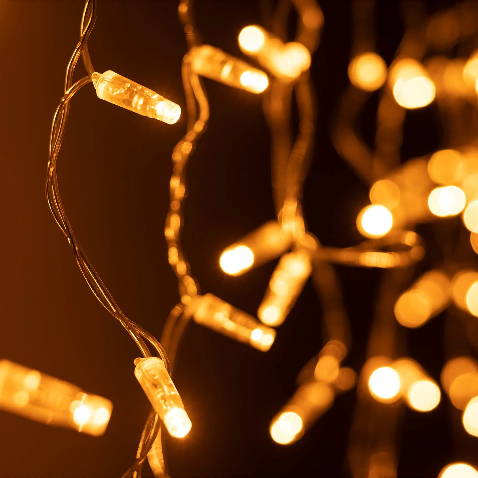 Светодиодная бахрома Classic. Размер 2400x600 мм (длина 2400 мм, по длине 24 нити высотой 200/600 мм). Количество светодиодов 88 шт размером 7 мм. Цвет свечения ЖЕЛТЫЙ, эффект постоянного свечения с резким световым рисунком (прозрачная вогнутая линза). Провод прозрачный, ПВХ. Питание 230 В, Мощность 6 Вт, защита IP65, применение на улице под навесом. Аксессуары для подключения приобретаются отдельно.