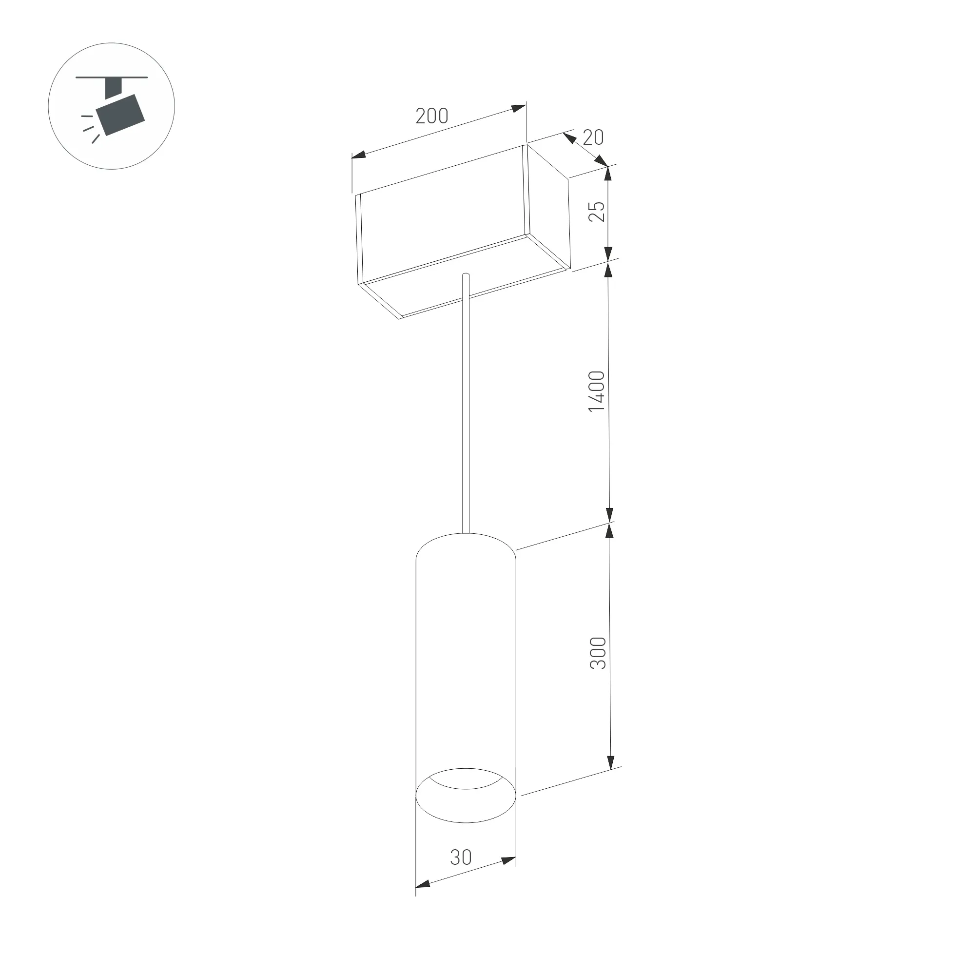 Светильник подвесной для магнитных треков шириной 25мм, 5Вт. Цвет свечения ТЕПЛЫЙ 3000K, световой поток 300лм, угол 45°, CRI>90. Корпус цилиндрический, металл, цвет черный с золотой вставкой, IP20. Размер светового модуля 30*300 мм; размер установочного модуля 200*20*25мм; длина подвеса 1400 мм. Входное напряжение DC24V, мощность 5Вт. Драйвер DС24V/AC230V поставляется отдельно. Диммируется только с 026407, 027633. Подвес регулируется.