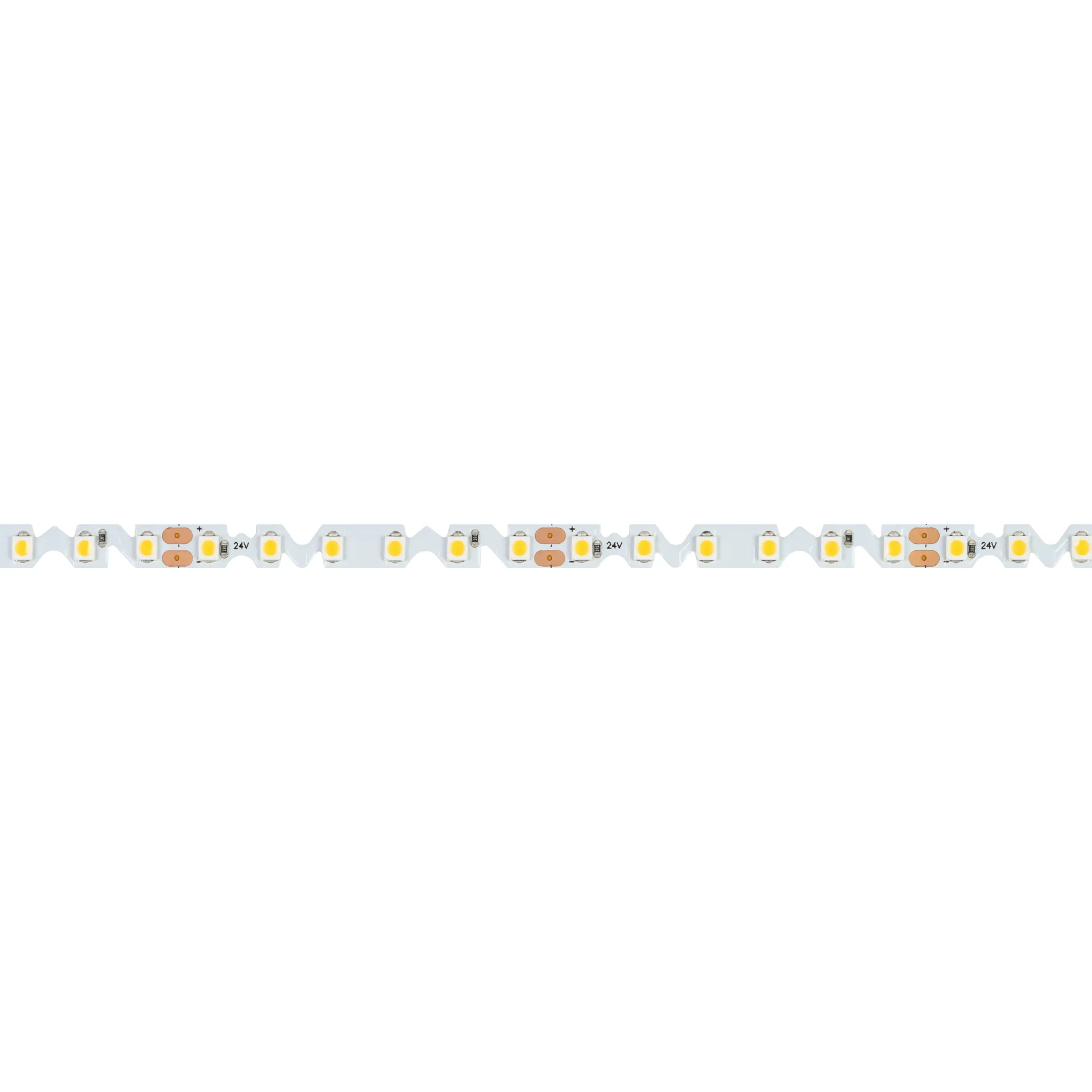 Гибкая светодиодная лента RZ серии A120 с фигурной платой в форме волны, легко изгибается на плоскости. Светодиоды SMD 2835, 120 шт/м, белая плата шириной 6 мм, скотч 3М. Цвет ТЕПЛЫЙ 2700K, индекс цветопередачи CRI>90, угол 120°. Питание 24 В, мощность 9.6 Вт/м (48 Вт на 5 м). Размеры 5000х6х1.3 мм. Мин. отрезок 50 мм, 6 светодиодов. Цена за 1 м. Обязательна установка на профиль.