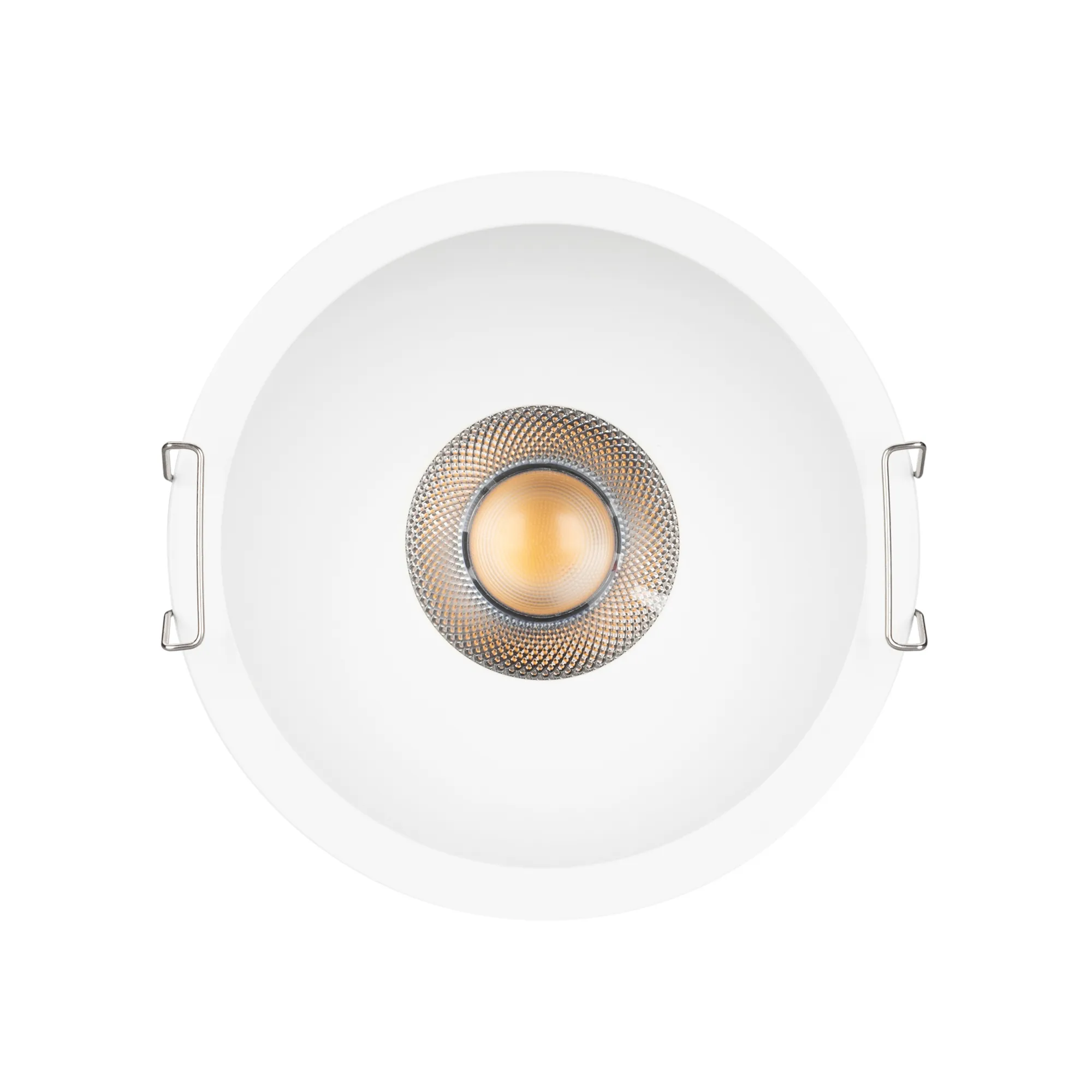 Встраиваемый светильник даунлайт. Мощность 20 Вт, св. поток 1810 лм, 90 лм/Вт, дневной 4000 K, CRI>90, угол 36°, напряжение питания 230 В. Белый круглый корпус из алюминия, степень защиты IP20. Размер: диаметр 123 мм, высота 68 мм. Монтаж встраиваемый, установочное отверстие: диаметр 110 мм. UGR<14. Драйвер 27-42 В, 500 мА, пульсация <2%.