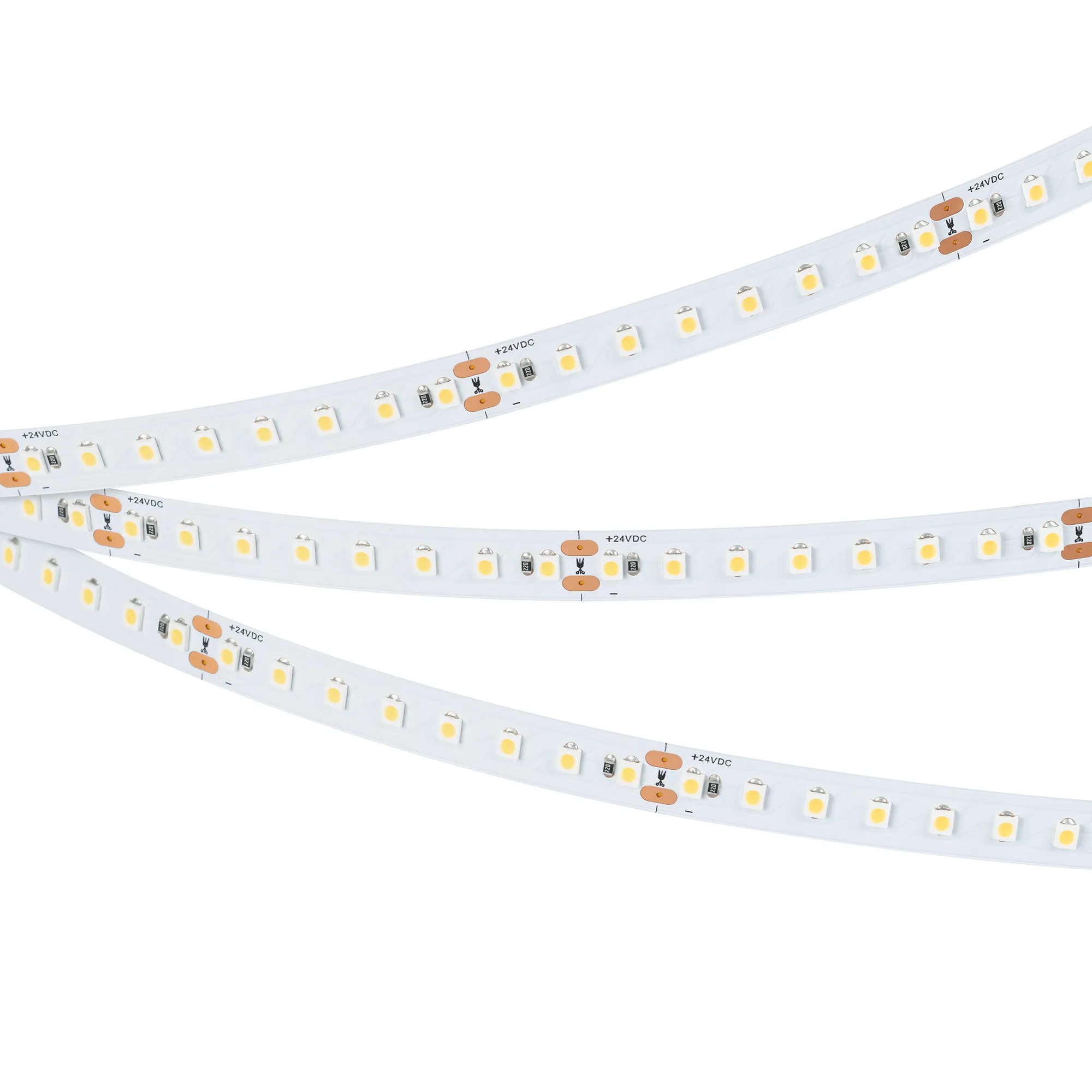 Светодиодная лента повышенной прочности TWIST серии A128. Светодиоды SMD 2835, 128 шт/м, белая плата шириной 10 мм, скотч 3M. Цвет ТЕПЛЫЙ 2700K, индекс цветопередачи CRI>90, угол 120°. Питание 24 В, мощность 10 Вт/м (50 Вт на 5 м). Размеры 5000x10x1.5 мм. Мин. отрезок 62.5 мм, 8 светодиодов. Цена за 1 м.