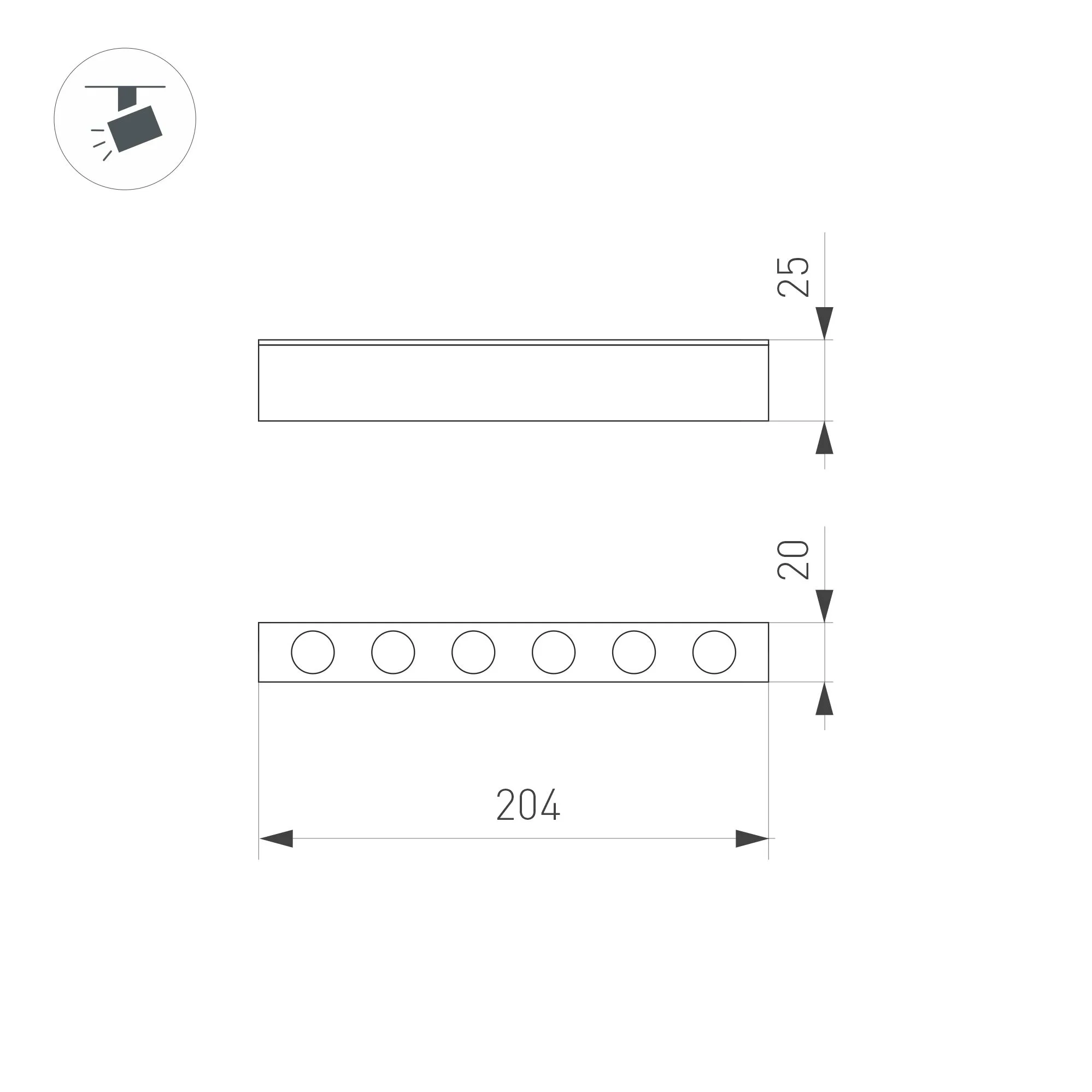 Светильник для магнитных треков шириной 25 мм, 6 Вт. Цвет свечения теплый 3000K, световой поток 400лм, угол 30°, CRI>90. Корпус прямоугольный, металл, цвет белый, IP20. Размеры LxWxH 204x20x25 мм. Входное напряжение DC24V, мощность 6 Вт. Драйвер DС24V/AC230V поставляется отдельно.Диммируется только с 026407, 027633.
