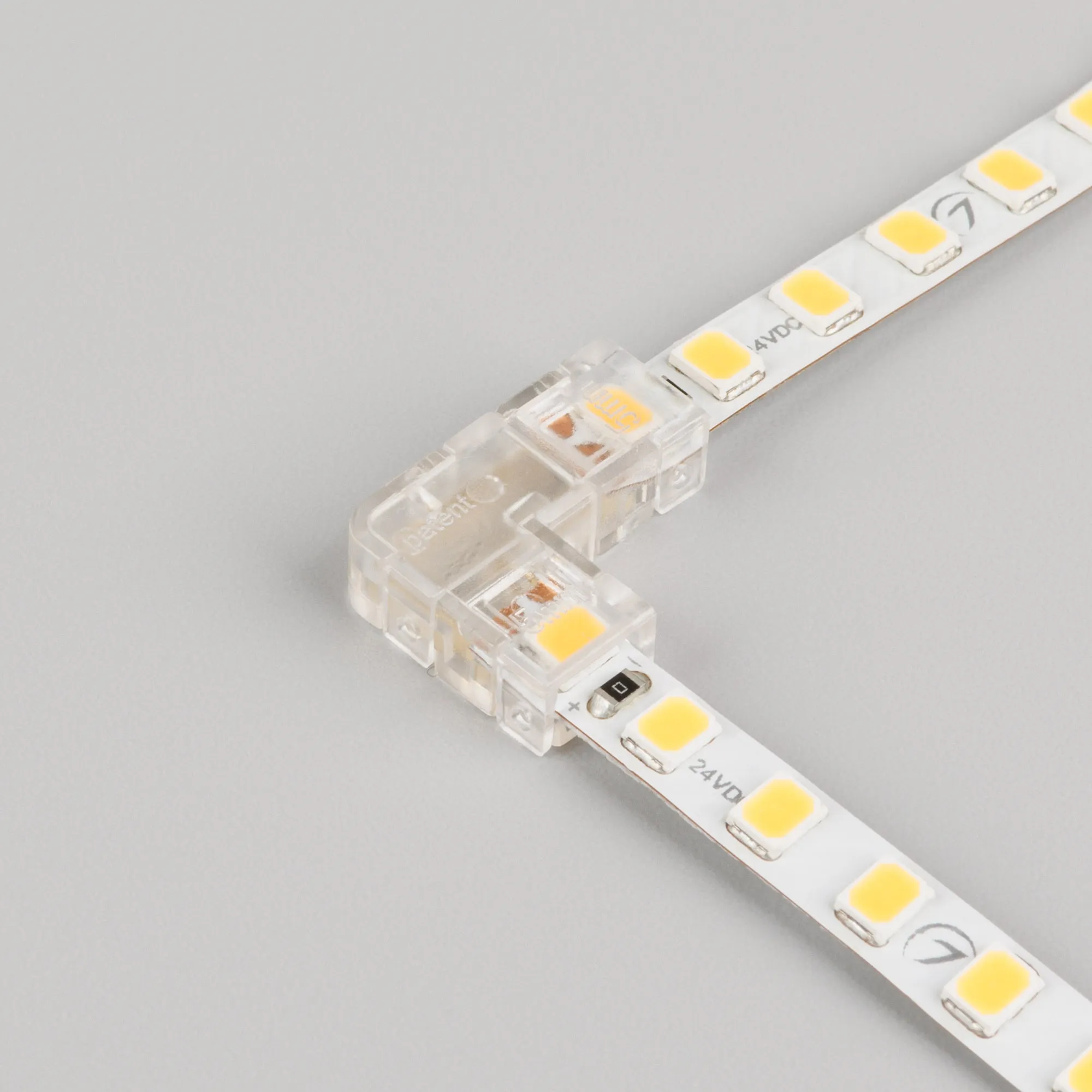 Угловой коннектор для соединения 2-х отрезков открытых IP20 светодиодных одноцветных лент (2216, 2835, COB) шириной 5 мм. Материал - прозрачный пластик. Обеспечивает соединение без видимых разрывов. Максимальный допустимый ток 3 А, максимальное напряжение 24 В, степень защиты IP20. Цена за 1шт, 10шт/пакет.