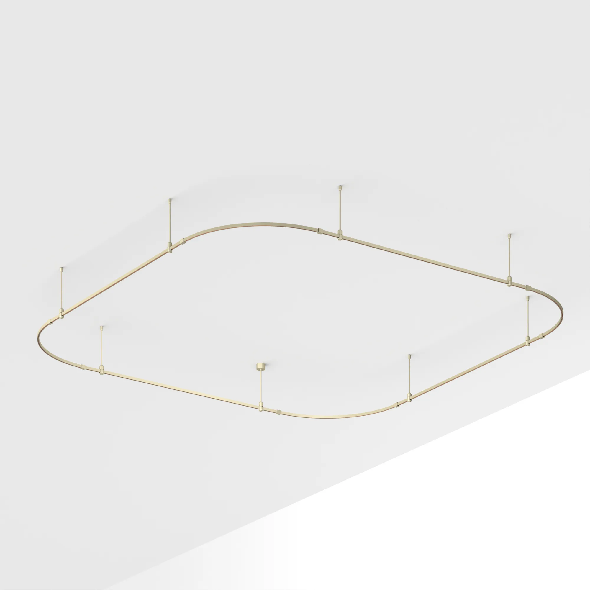 Подвесная конструкция APRIORI, форма закруглённый квадрат. В комплекте треки с аксессуарами и жесткими подвесами длиной 400мм. DC48V. Материал алюминий, цвет серо-оливковый. Размер ДxШxВ: 3500x3500x22мм. Светильники и источники питания приобретаются отдельно.