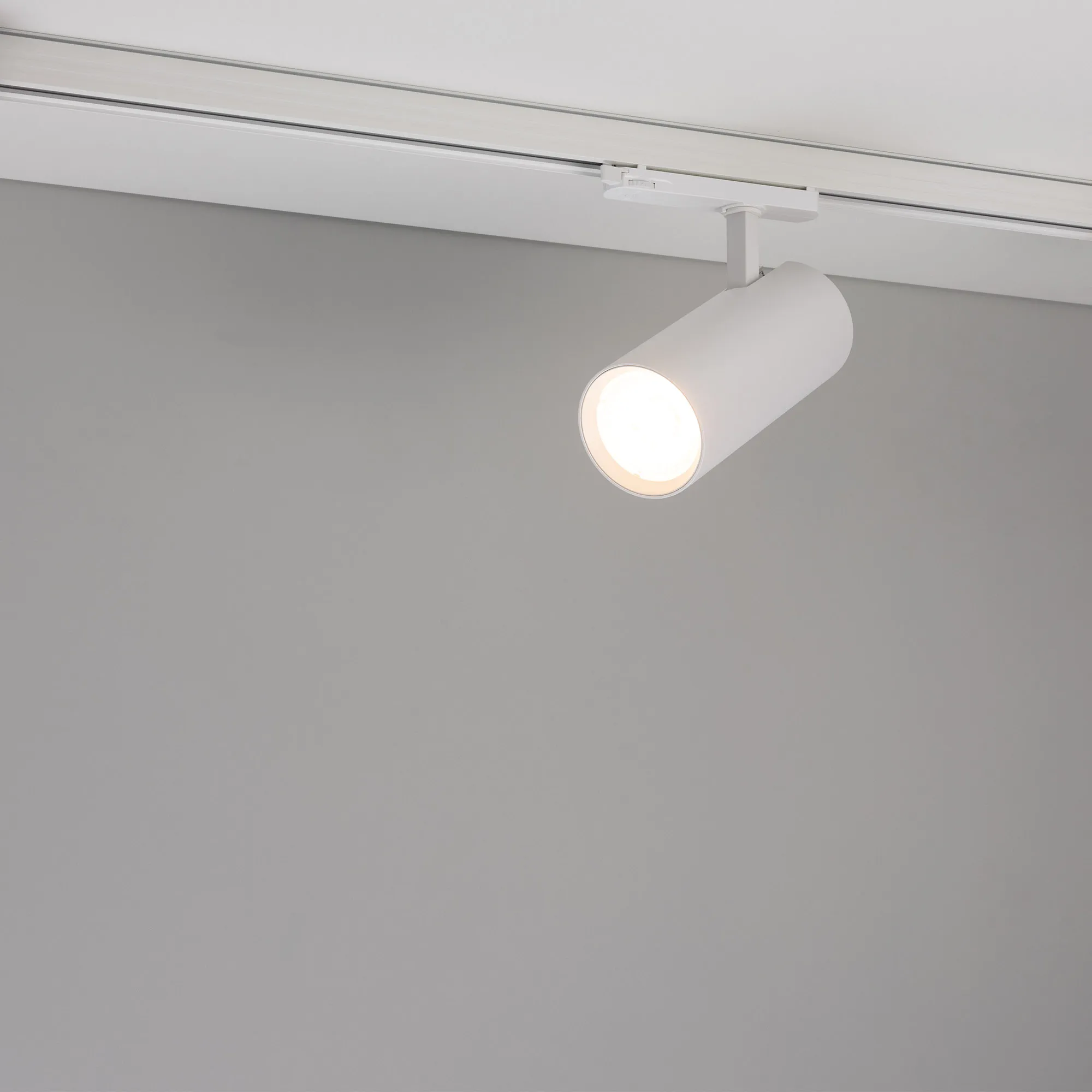 Светильник для треков/шин 4 провода. Мощность 40Вт, св. поток без решетки honeycomb 4000 лм, 100 лм/Вт, с решеткой honeycomb 2640 лм, 66 лм/Вт, теплый 3000 K, CRI>90, угол 55°, напряжение питания 230 В. Белый круглый корпус из алюминия, материал линзы PMMA, степень защиты IP20. Размер: диаметр 90 мм, длина световой части 141 мм. Монтаж на трек 3-фазный. Драйвер встроенный 24-42 В, 750мА., пульсация <5%
