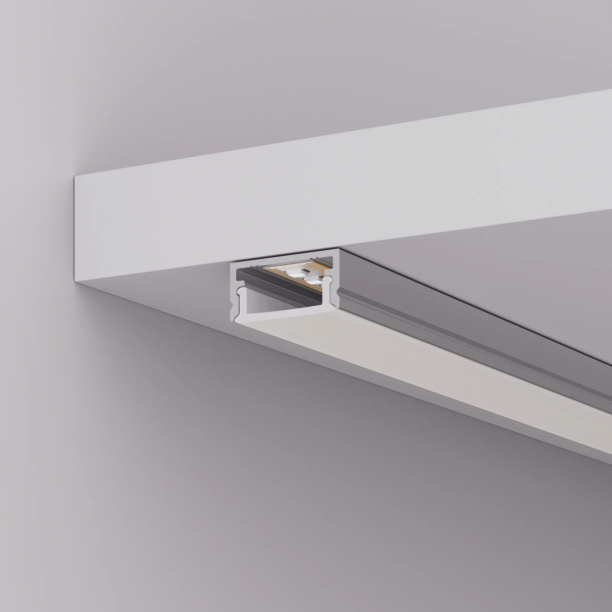 В комплект входят: алюминиевый анодированный профиль 2000 мм, матовый экран 2000 мм, пластиковые глухие заглушки - 2 шт., заглушки с кабелем 1 метр и разъёмом 5.5 DC Female - 2 шт., металлические держатели - 4 шт., шурупы - 4шт., светодиодная лента со свободной резкой.