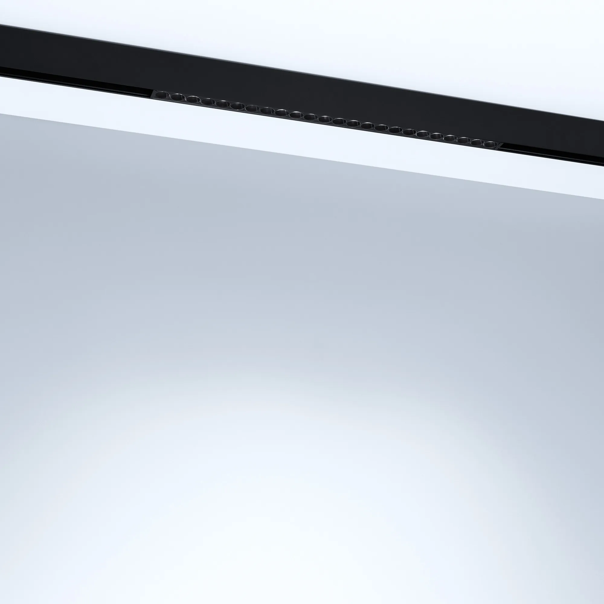 Светильник для магнитных треков MAG-ORIENT шириной 26 мм с управлением TUYA Zigbee и изменяемой цветовой температурой. Мощность 16 Вт, св. поток 1120-1200 лм, 70-75 лм/Вт, изменяемая цветовая температура 2700-6500 K, CRI>92, угол 24°, напряжение питания 48 В. Черный прямоугольный корпус из металл, экран поликарбонат, степень защиты IP20. Размер: длина 462 мм, ширина 22 мм, высота 42 мм. Монтаж на трек MAG-ORIENT. Пульсация <1%. Работает с голосовыми помощниками (Алиса, Маруся и т.д.)